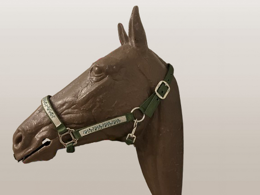 Horse Halter, Solid Color Webbing, Choice of Brass or Nickel Hardware. 1" Wide, 3 Ply Nylon Webbing
