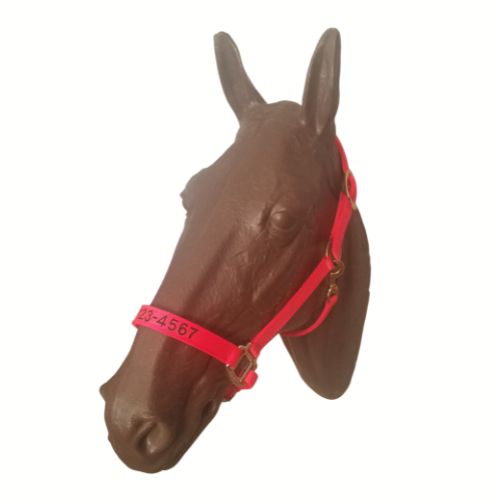 Personalized Horse Evacuation Identification Halter made with Reflective Orange Nylon Webbing, Embroidered Telephone Number, Breakaway Head Strap